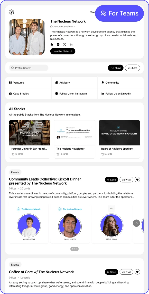 “All my favorite spots and recommendations in one place I can share with anyone who asks. It’s a no-brainer.” — Jake“Investor dinner follow-ups, restaurant recommendations, travel guides: Stacklist lets me combine everything I love and share it with the people who matter most.” — Michael