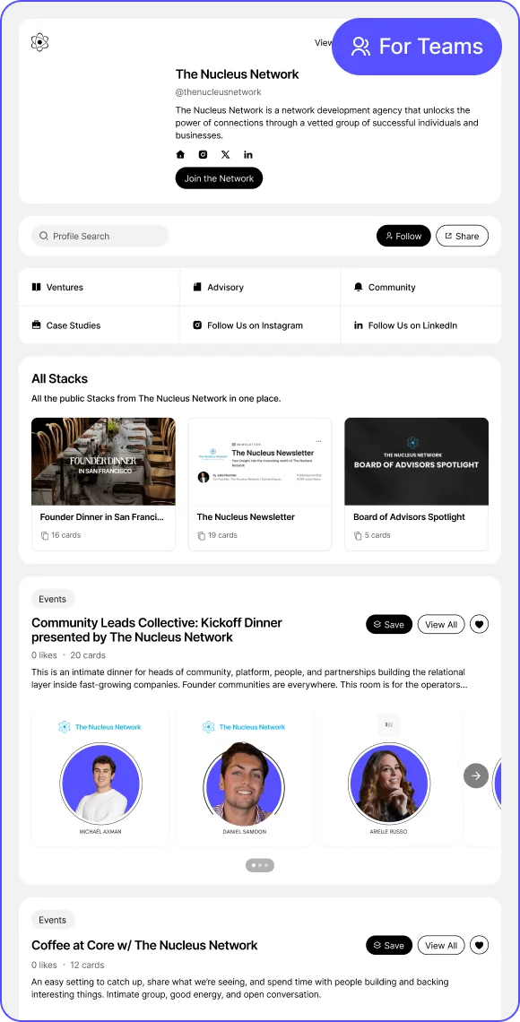 “All my favorite spots and recommendations in one place I can share with anyone who asks. It’s a no-brainer.” — Jake“Investor dinner follow-ups, restaurant recommendations, travel guides: Stacklist lets me combine everything I love and share it with the people who matter most.” — Michael